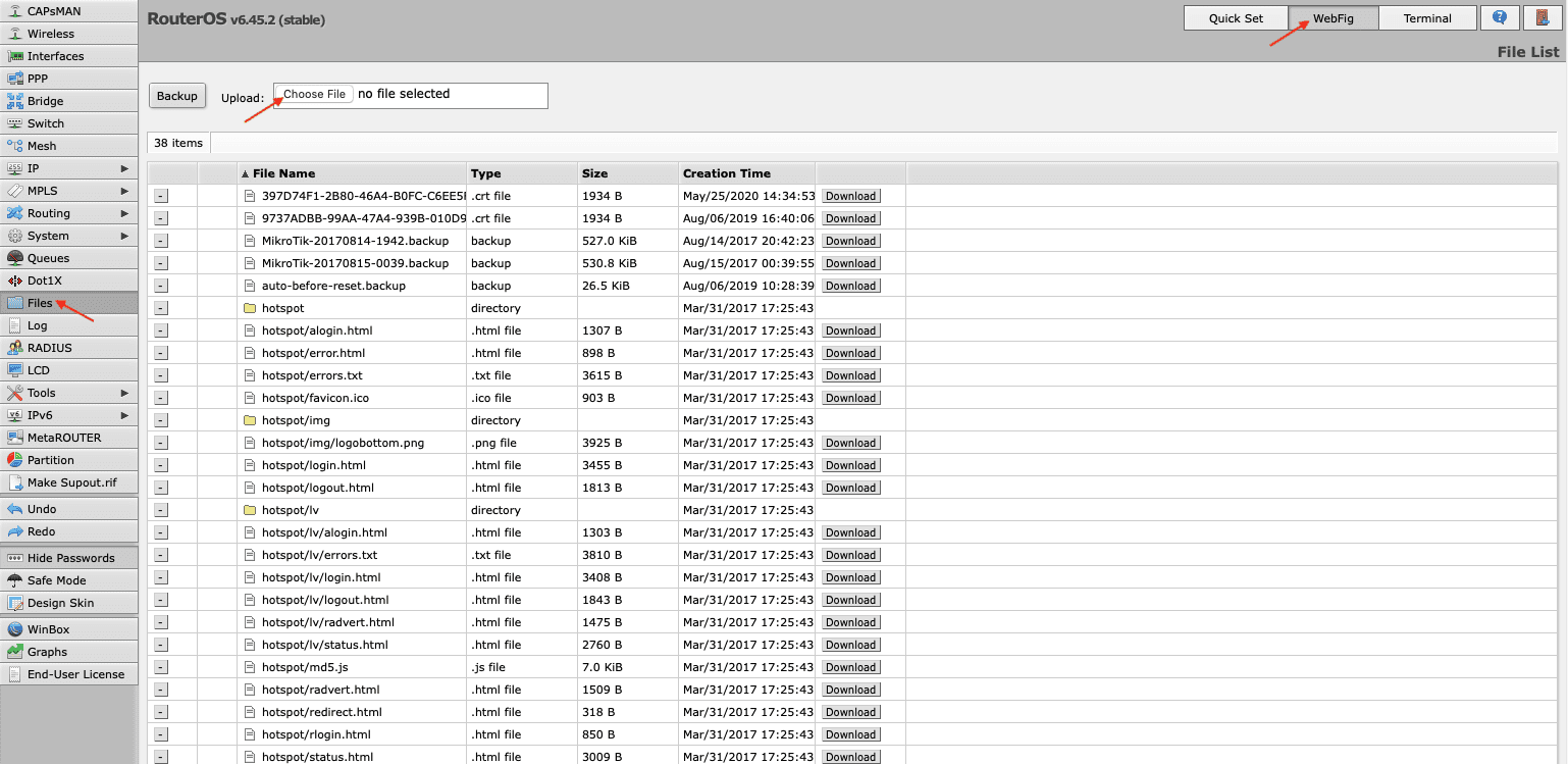 1. Proceed to your Mikrotik WebFig.