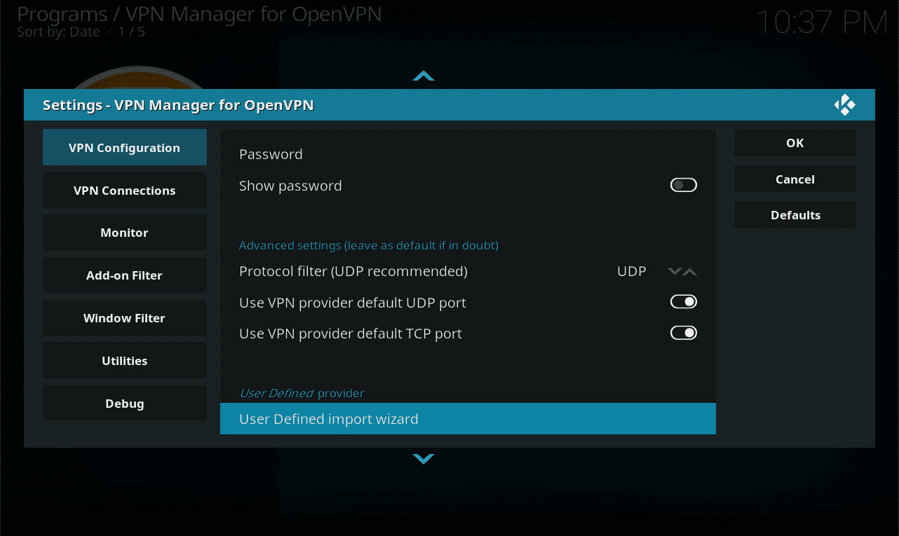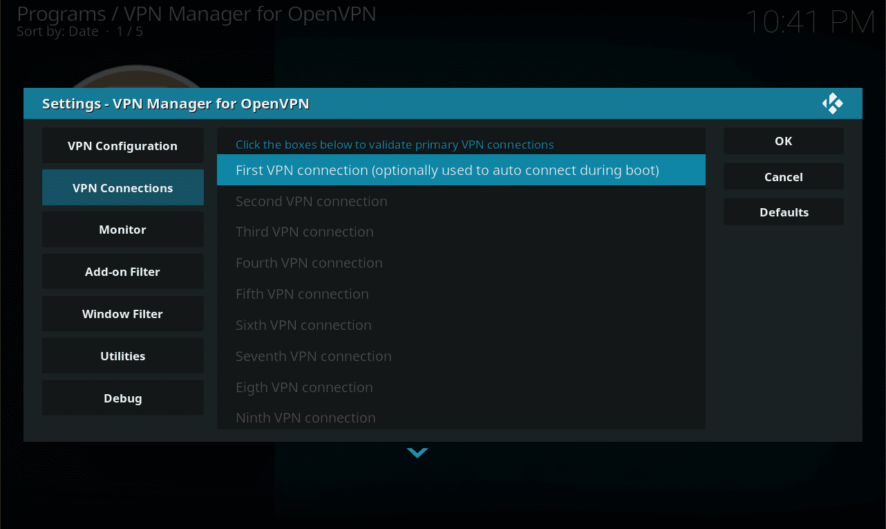 Note: This is a Kodi add-on designed especially to make it easy to configure and manage VPN connections from within Kodi.