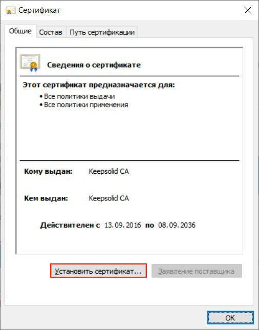 Примечание: Сертификат безопасности от VPN Unlimited будет автоматически загружен на ваш Windows ПК.