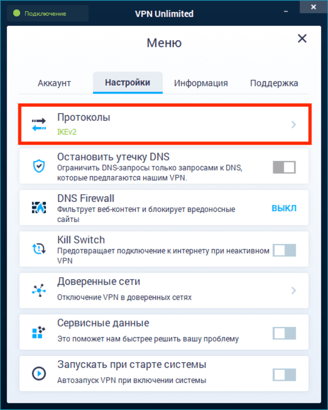 Метод 2. Как настроить протокол IKEv2 с помощью приложения VPN Unlimited